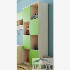 В набор также входит двустворчатый шкаф с отделением для одежды и двумя выдвижными ящиками в нижней части. Шкаф дополняет навесная полка с закрытыми отделениями, в которой удобно разместить учебные пособия или другие вещи.