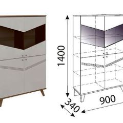 Сервант Лимба М04 имеет 4 фасада: 2 нижних глухие и 2 верхних со вставкой из прозрачного стекла в цвете бронза.