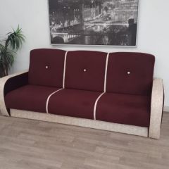 Это лучший вариант соотношения «цена-качество». Спальное место дивана основано на пружинных блоках, соединенных между собой механизмом раскладки «Книжка». Имеется вместительный короб для бельевых принадлежностей. Съемные подлокотники упрощают процесс транспортировки.