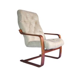 Особая форма спинки идеально повторяет контуры человеческого тела, благодаря этому достигается эффект максимального расслабления. Главная особенность — отсутствие задних несущих ножек, устойчивость обеспечивается за счет особой изогнутой конструкции каркаса. Прочный каркас из гнутоклееного шпона с легкостью выдерживает вес до 150 (ста пятидесяти) килограмм.