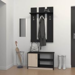Представляет собой небольшую, компактную и функциональную прихожую. Она состоит из двух модулей – вешалки с крючками и тумбы-банкетки. Последняя включает в себя три полочки для различных вещей, ящика и мягкого сидения. Выпускается прихожая в двух цветах: корпус – ясень шимо светлый или ясень шимо темный, мягкий элемент – ткань и винилискожа серого цвета.