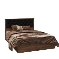 СКР-2 Кровать с мягкой спинкой (сп/м 1400*2000мм), (б/основ.), к/з черный/ЛДСП Дуб крафт табачный